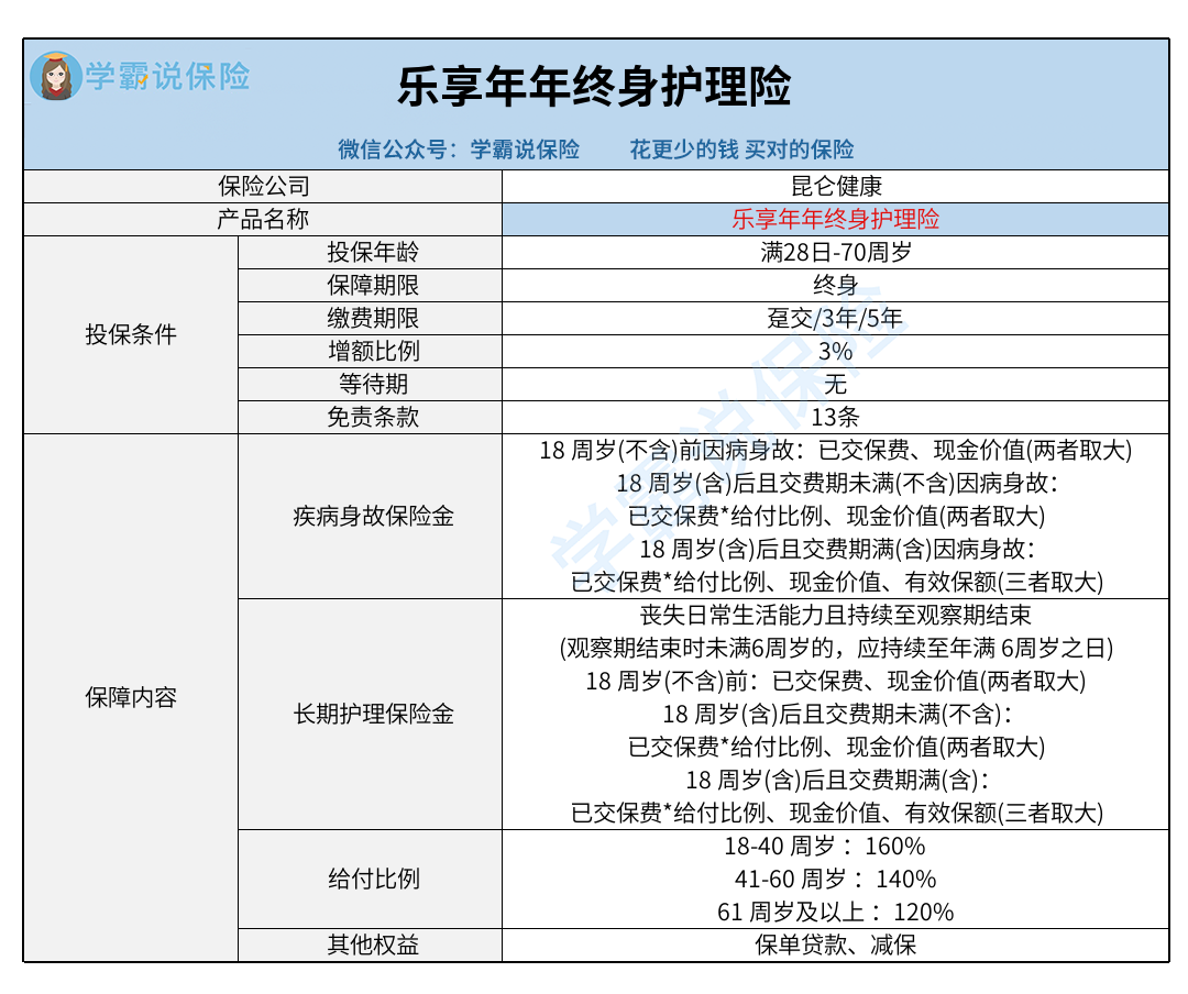 学姐听说,昆仑健康就推出了一款护理险,名为乐享年年终身护理险。