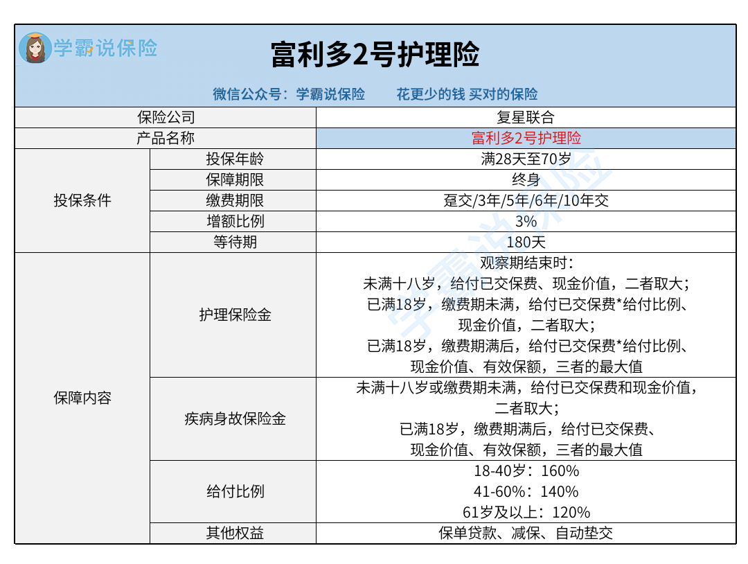 看完上图,相信大家对于富利多2号护理险的产品形态有了一定了解。
