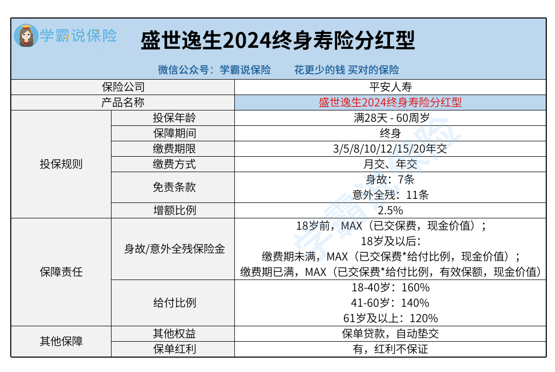 平安盛世逸生2024终身寿险分红型保障内容分析!